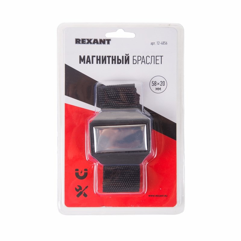 Магнитный браслет на руку 58х50х20 мм REXANT предназначен для фиксации метизов, бит, крепежа и других железосодержащих предметов на руке при работе в труднодоступных местах.