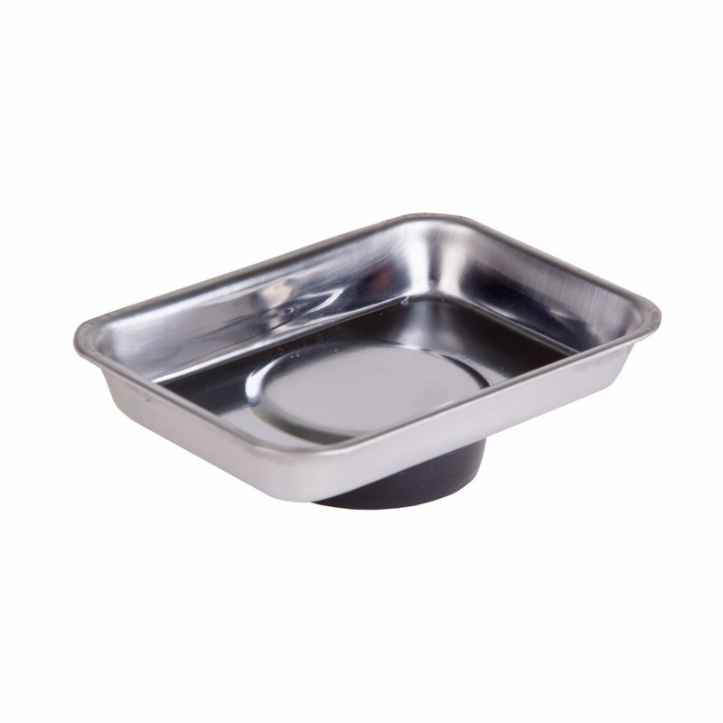 Поддон магнитится с обеих сторон и его можно устанавливать и на вертикальные поверхности и даже на потолке. А мощный магнит будет удерживать то, что в самом поддоне. Поверхность поддона изготовлена из нержавеющей стали, которая устойчива к влаге и механическим повреждениям. Дно с внешней стороны покрыто резиной, что позволяет примагнитить поддон даже к вашему авто во время ремонта. Суммарная масса удерживаемых деталей может составлять до 6 кг в обычном положении.