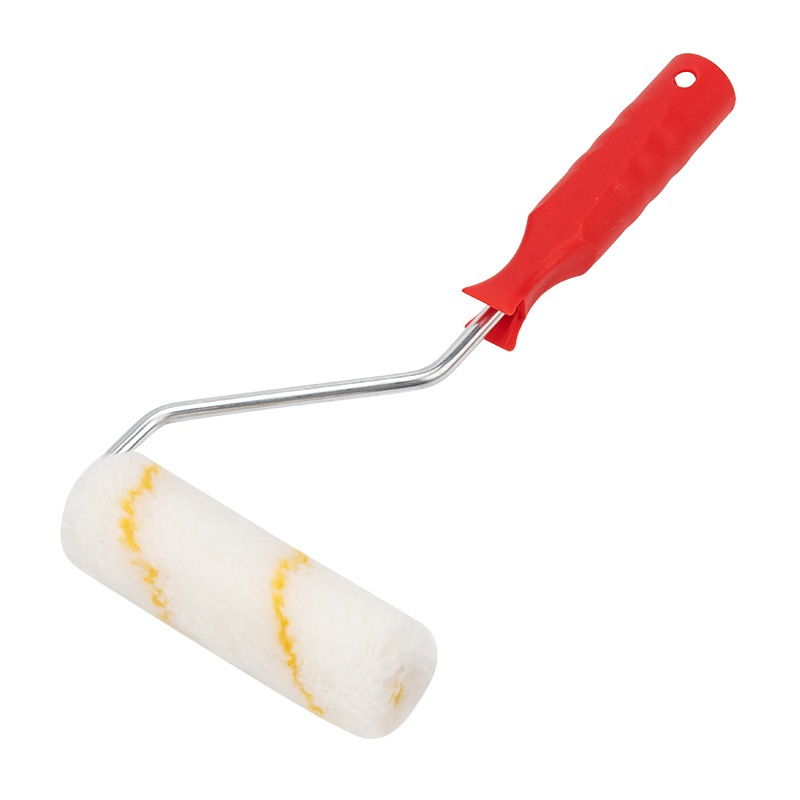 Валик состоит из пластмассового цилиндра, мягкой шубки, бугеля (изогнутого металлического стержня) и удобной пластиковой рукоятки.