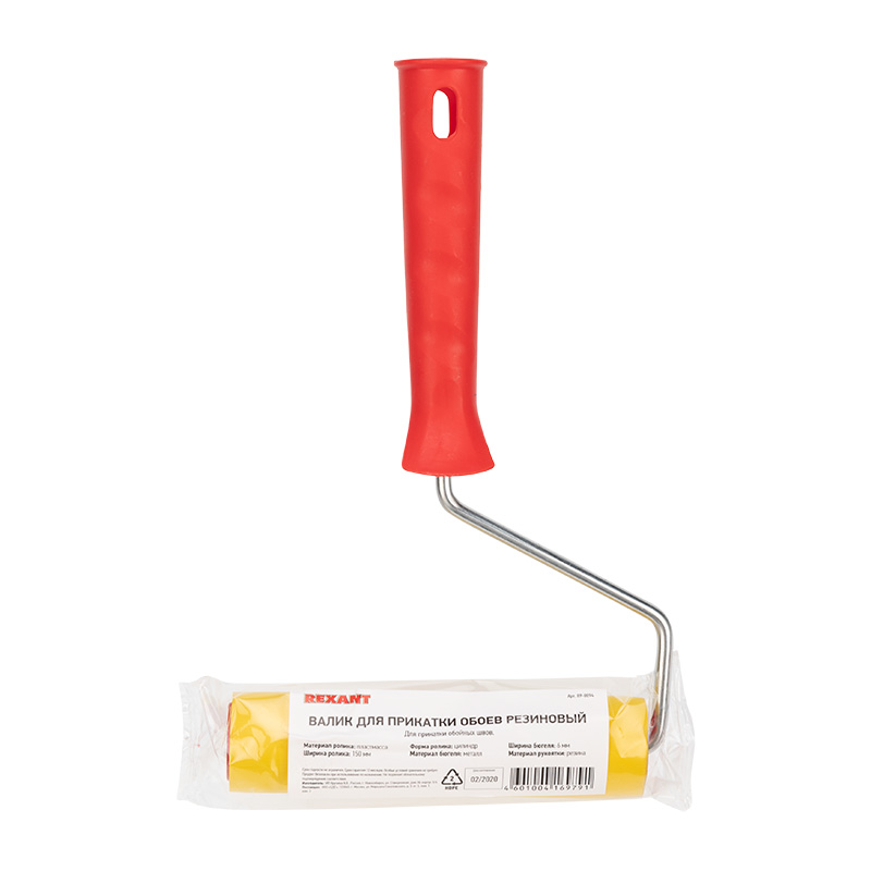 Валик для прикатки обоев резиновый, ширина ролика 150 мм, ручка 6 мм REXANT |