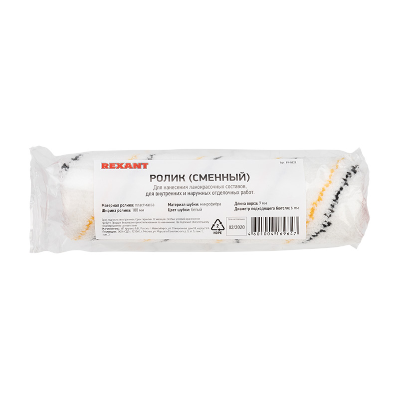 Ролик малярный торговой марки REXANT представляет собой рабочую часть валика: пластмассовый цилиндр, покрытый мягкой шубкой. Ролик легко монтируется на ручку REXANT артикул 89-0133 , а также применим и для других, подходящих по размеру ручек.