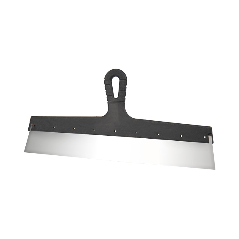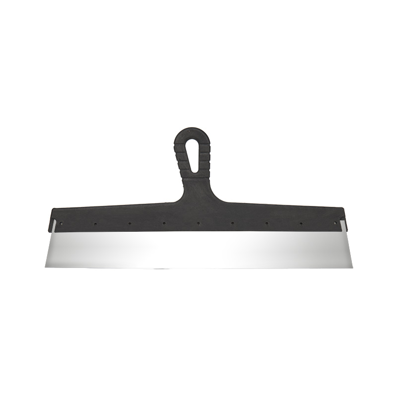 Фасадный шпатель оснащен эргономичной пластмассовой ручкой с рифлением, которая обеспечивает надежный хват инструмента, при использовании, в том числе, в грубых строительных перчатках. Основной рабочей частью шпателя является металлическое полотно, поэтому для производства шпателей мы используем нержавеющую сталь марки AISI 201 толщиной 0,4 мм высоконагартованную (1500 н/мм). Сталь данной марки обладает улучшенными механическими свойствами, исключающими деформацию полотна в процессе работы.