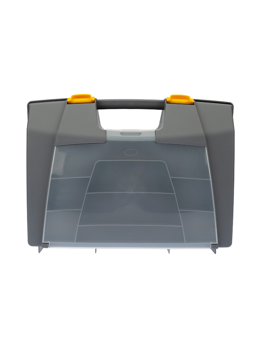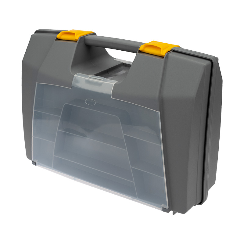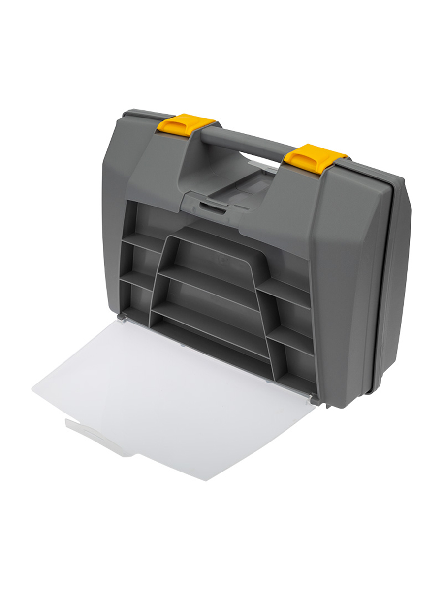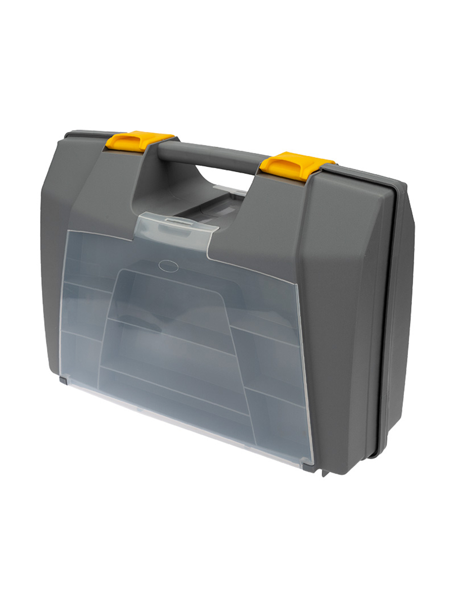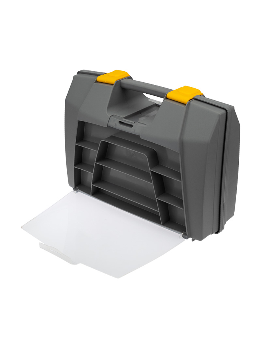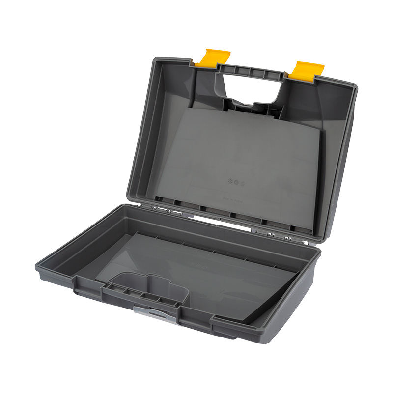 Подходит для хранения инструмента, также имеет два отделение для мелочей, замок плотно фиксирует крышку, что обеспечивает сохранность вещей при транспортировке, эргономичен, функционален.