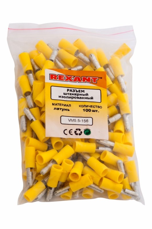 Клемма штекерная изолированная (штекер ø 5 мм) 4-6 мм² желтая REXANT предназначена для создания качественного «мобильного» подключения электрооборудования или соединения проводов между собой, которое при необходимости, возможно разъединить без лишних усилий. Такая клемма используется для оконцовывания многожильных медных проводов при монтаже мобильных электрических контактных соединений на подвижном составе (автомобиле-, вагоно-, самолето- и судостроении).