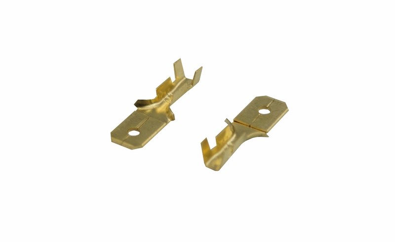 Клемма плоская неизолированная (штекер) REXANT изготовлена из латуни. Обжатие производится специальными пресс-клещами (к примеру, ht-202 арт.12-3031 и 12-3032; ht-230 арт.12-3101 и 12-3001; ht-301 арт.12-3020) по жиле и по изоляции, что обеспечит максимальную прочность соединения с проводом. Размер контакта определяется шириной клеммы. Каждая клемма имеет отверстие, служащее фиксатором замкового типа с гнездовым разъемом.