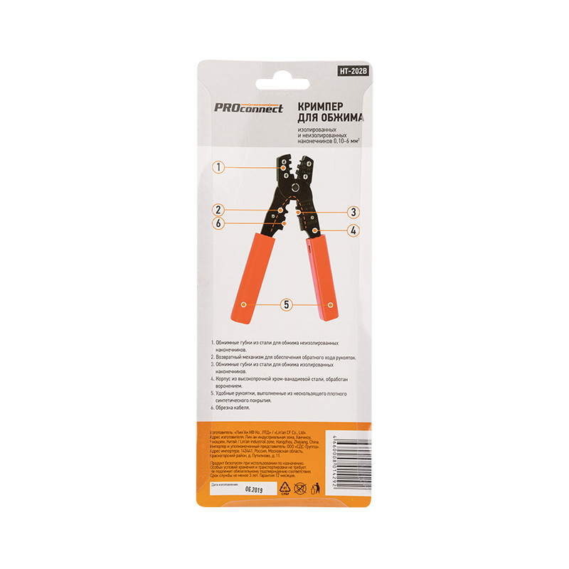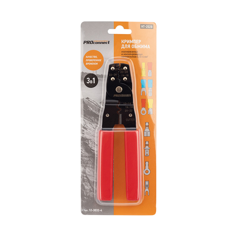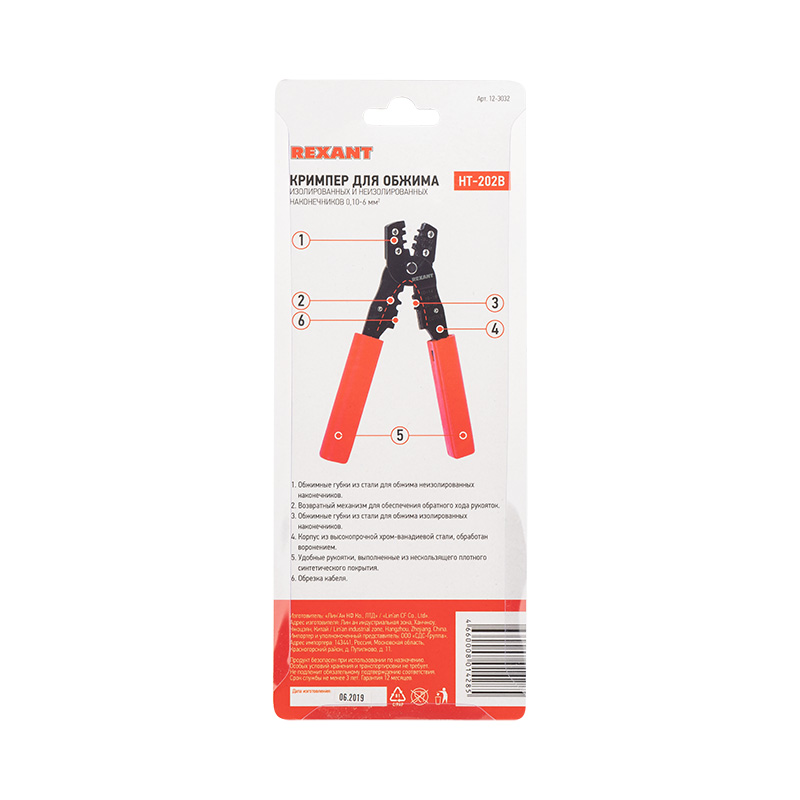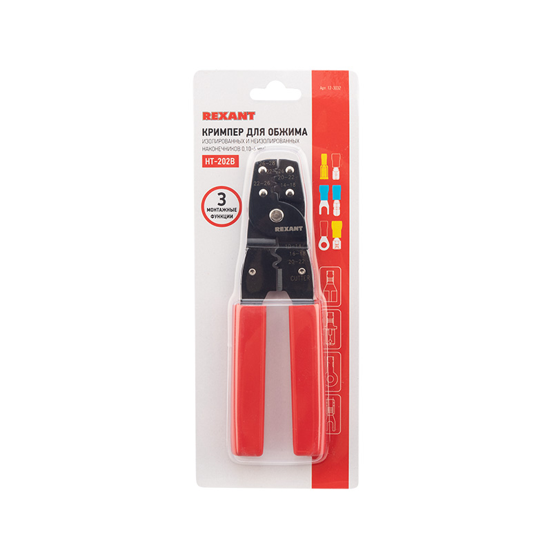 Кримпер REXANT HT-202B — универсальный инструмент для обжима неизолированных и изолированных клемм с диапазоном обжима 0.10-6.0 мм²