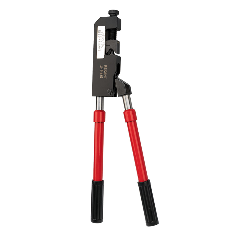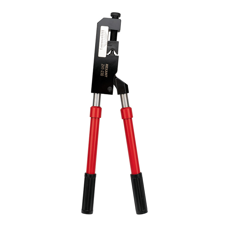 Универсальный механический пресс REXANT ZHT-230 предназначен для опрессовки наконечников и гильз любого стандарта в диапазоне от 10 до 300 мм².