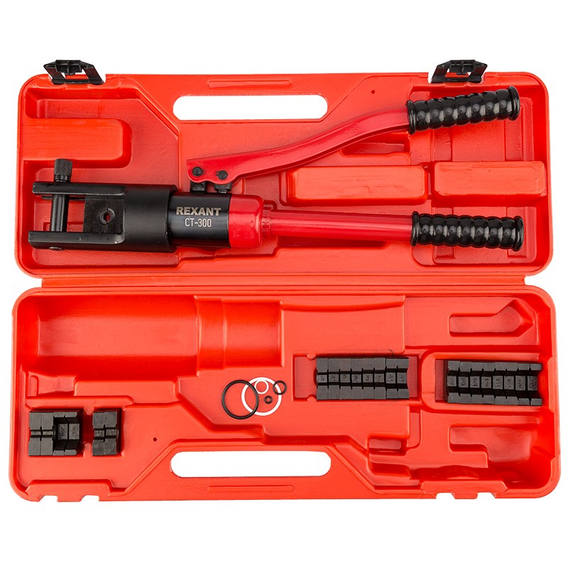 Гидравлический обжимной инструмент REXANT CT-300 позволяет создавать надежное соединение между кабельной жилой и кабельным наконечником или гильзой. В комплектацию входят сменные матрицы для опрессовки жил и наконечников разного сечения.
