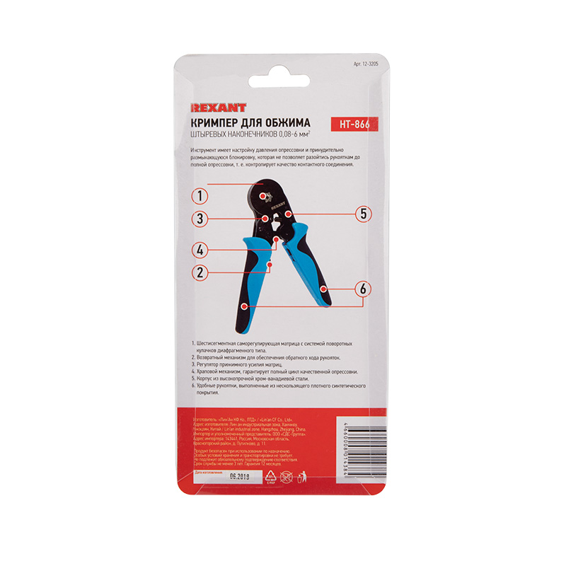 Кримпер REXANT HT-866 предназначен для опрессовки штыревых наконечников в диапазоне 0.08-6.0 мм².