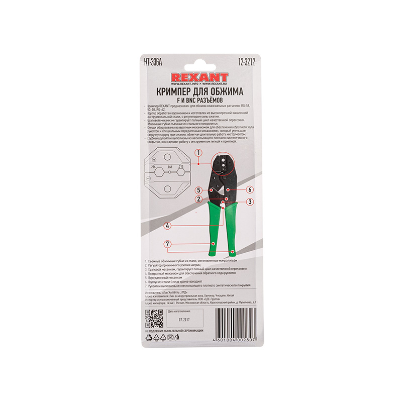 Кримпер REXANT HT-301 A для обжима F и BNC разъемов предназначен для обжима коаксиальных разъемов RG-59, RG-58, RG-62.