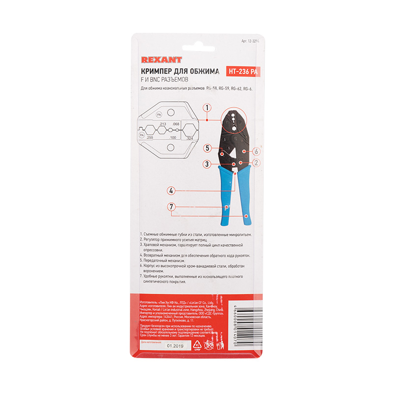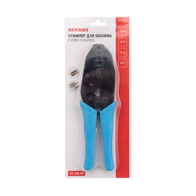 Кримпер REXANT HT-301 PA для обжима F и BNC разъемов RG-58, RG-59, RG-62, RG-6