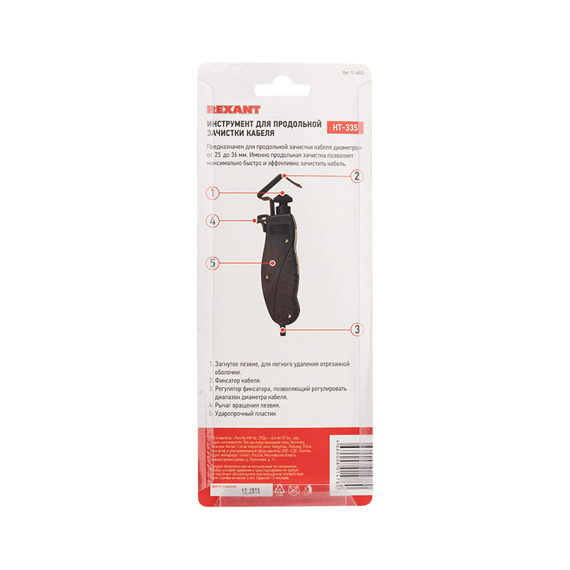 Инструмент REXANT HT-335 предназначен для продольной зачистки кабеля диаметром в диапазоне от 25.0-36.0 мм.