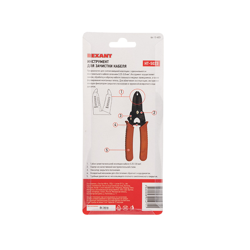 Инструмент для зачистки кабеля REXANT HT-5023 0.25-0.8 мм |