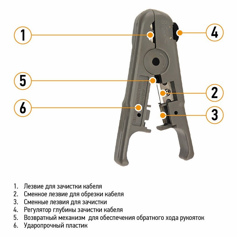 - Возможность смены ножей, с помощью которых можно снимать внешнюю оболочку с проводников.