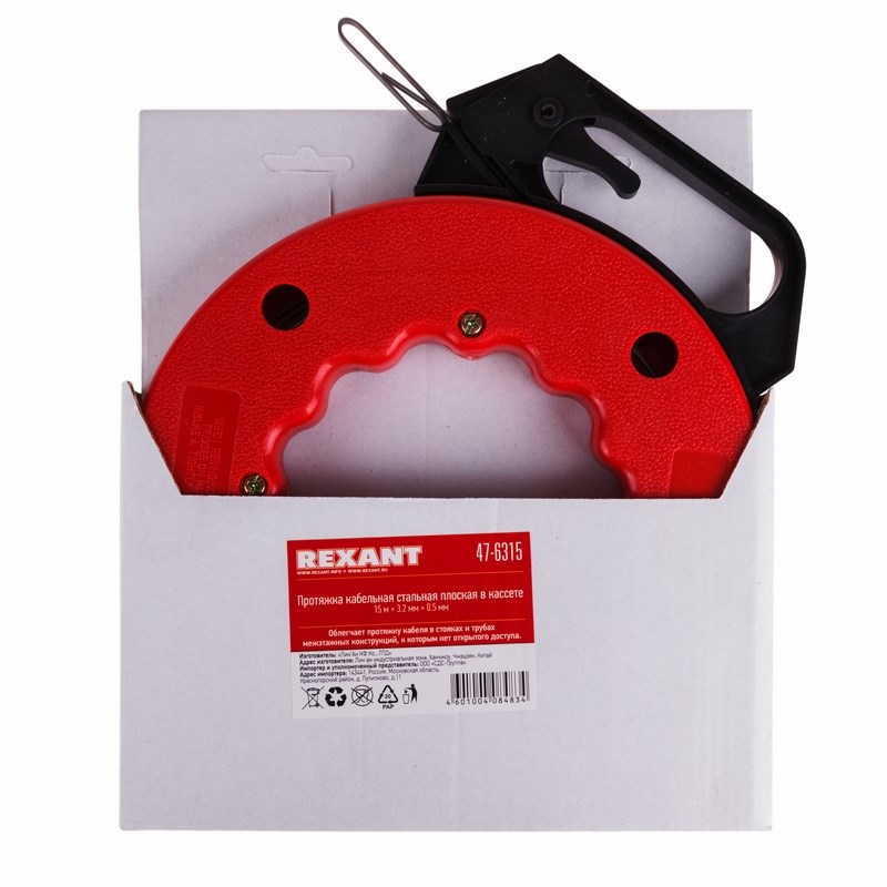 Протяжка кабельная стальная плоская REXANT, в кассете 15 м
