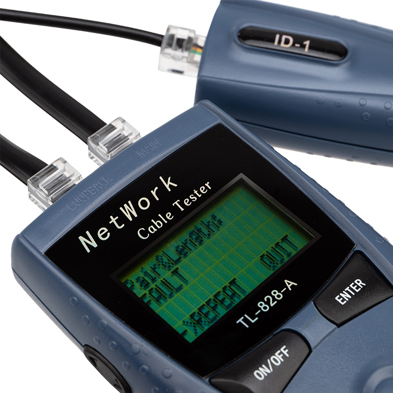Инструмент позволяет тестировать витую пару с точностью +1 % длиной от 5 до 450 метров. Информация выводится на жидкокристаллический дисплей размером 42х25 мм.