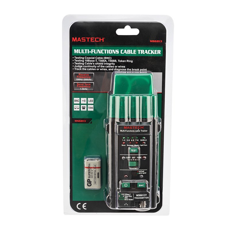 Трассоискатель MASTECH MS6813T — универсальный прибор с большим количеством функций. Предназначен для обнаружения скрытой проводки, как рабочей, так и поврежденной, экранированной и неэкранированной витой пары, проверки коаксиального кабеля, тестирования телефонной линии и LAN кабеля, проверки целостности и конфигурации сети, выявления замкнутых и разомкнутых кабелей, выявления разрывов цепи и коротких замыканий. Прибор обладает выдающимся функционалом и будет полезен как профессиональным строителям и рабочим, так и любителям, за счет простого и понятного управления и отсутствия необходимости в настройке.