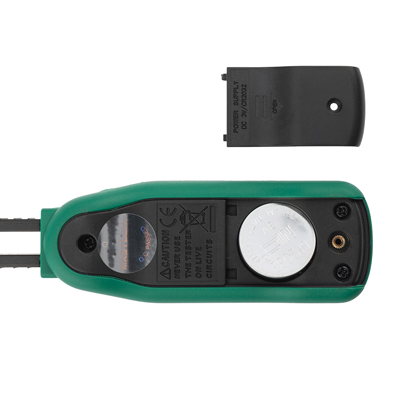 Измерительные щупы очень тонкие, специально спроектированы для удобного использования при тестировании ЧИП элементов, которые можно заменить на запасные в случае поломки. Питание прибора производится от 3-вольтовой дисковой батарейки CR2032. Прибор поставляется в комплекте с пластиковым кейсом.