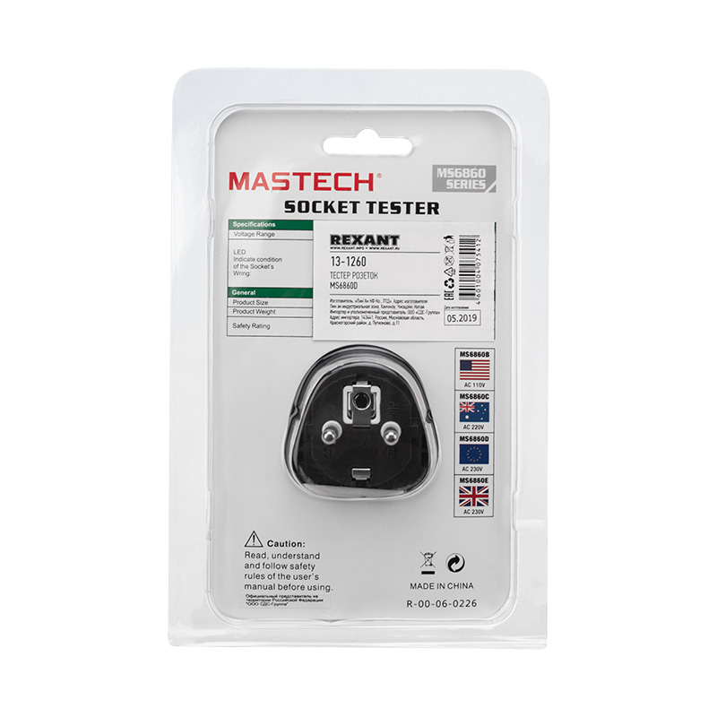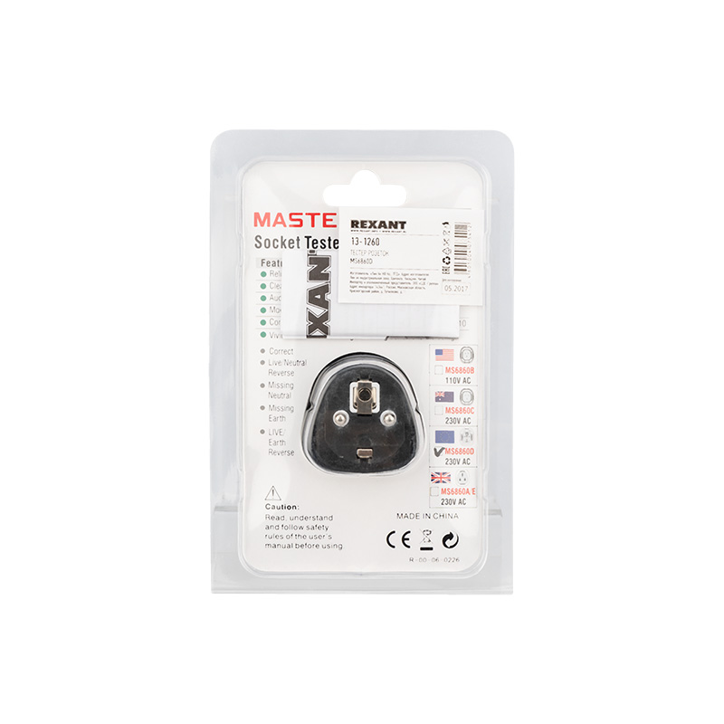 Тестер розеток MASTECH MS6860D предназначен в первую очередь для контроля качества работы монтажной организации по установке евророзеток. Он оснащен световыми и звуковыми индикаторами. Тестер используется для проверки электрического питания в сетях (до 230 Вольт) и определяет различные нарушения в установленных розетках. При обнаружении неисправности тестер подает световой и звуковой сигнал.