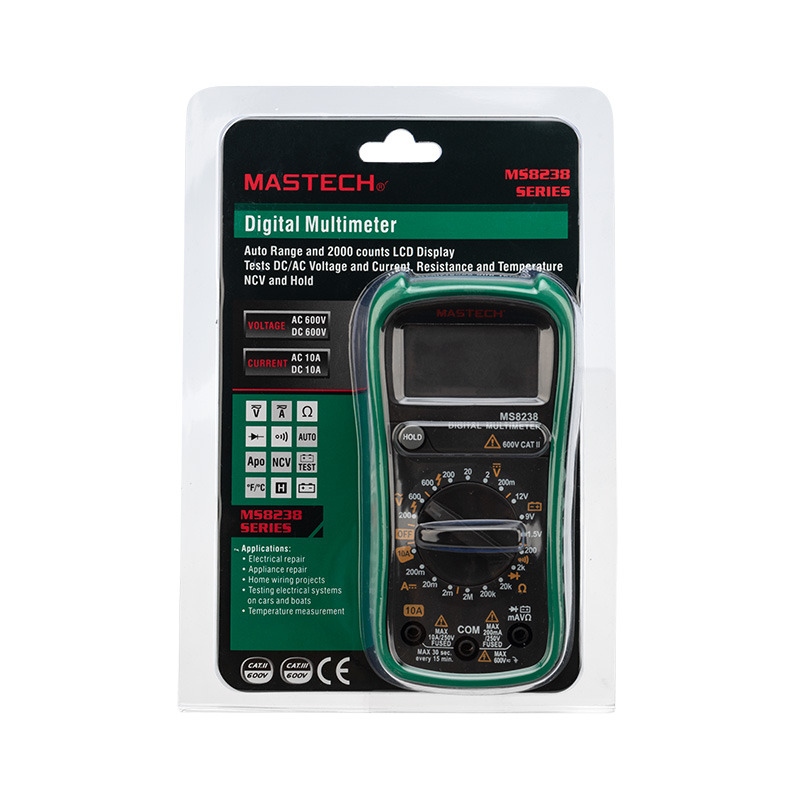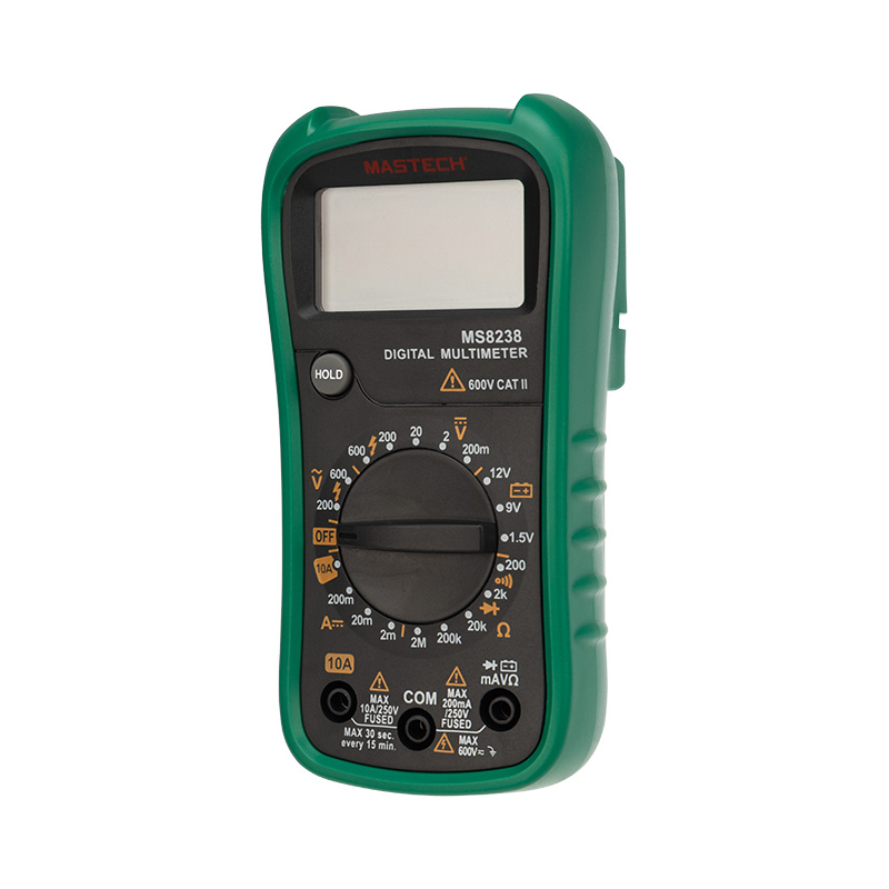 Мульти́метр — электроизмерительный прибор, который включает в себя определенный набор измеряемых параметров и функций. Прибор MS8238 представляет собой компактный, удобный измерительный прибор последнего поколения, который можно всегда держать под рукой. С помощью данного прибора, можно измерять постоянное и переменное напряжение, постоянный ток и сопротивление. А также можно проводить тестирование диодов и прозвонку целостности цепи.