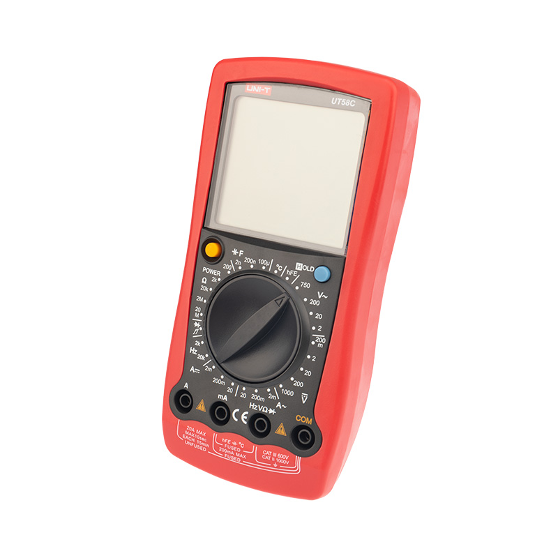 UT58C — это профессиональный мультиметр с современным и эргономичным дизайном. Предназначен прибор для измерений постоянного и переменного напряжения, сопротивления, постоянного и переменного тока. Кроме того, он имеет функции измерения электрической емкости, частоты температуры, а также с его помощью вы сможете тестировать диоды и проводить прозвонку целостности цепи. Данный прибор обладает высоким классом точности показаний.