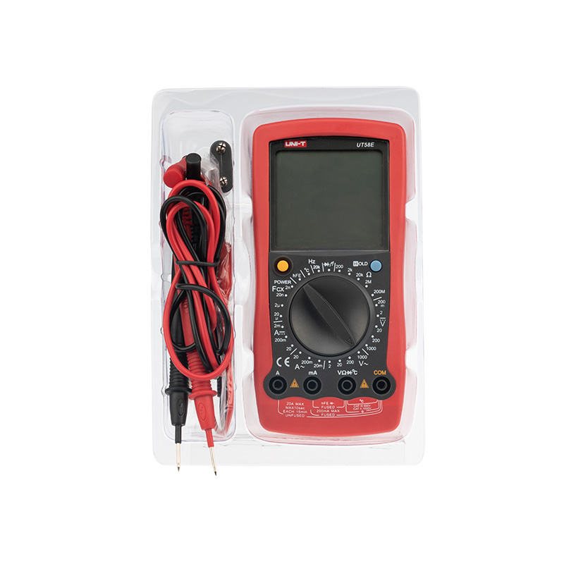 Дисплей прибора оснащен подсветкой, которая позволяет проводить измерения даже в слабоосвещенных местах. Широкий функционал мультиметра UT58E позволяет обходиться без других вспомогательных устройств. Прибор оснащен функцией DATA HOLD, и зафиксировав результат измерений, вы в любое время сможете считать полученный значение. Прибор изготовлен из высококачественных материалов.