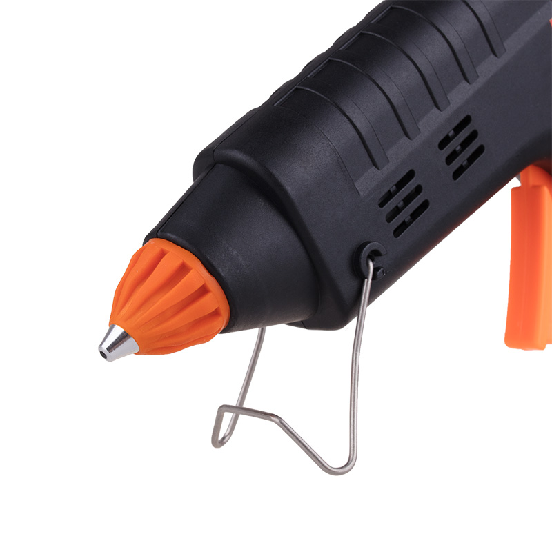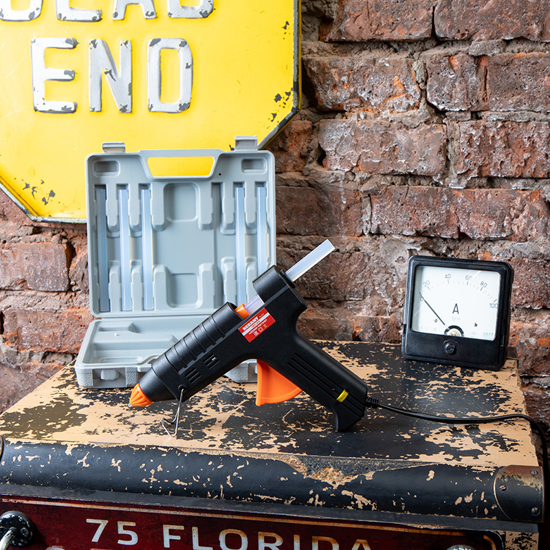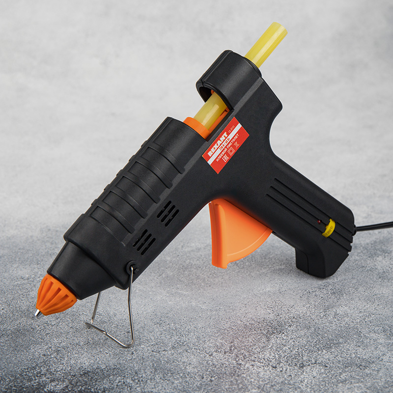 Принцип работы: клеевой стержень плавится в металлической камере с помощью нагревательного устройства и для точного дозирования при нажатии на курок подается из сопла на склеиваемую поверхность. Высокая мощность пистолета в 60 Вт позволяет очень быстро разогреть клеевой стержень и получать удовольствие от быстрой и бесперебойной работы. С его помощью вы сможете склеить: дерево, пластик, резину, кожу, стекло, металлы (их лучше перед работой разогревать феном), ткань, пенопласт, керамику, картон, бумагу, цветы или что-то другое.