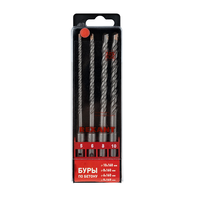 Набор буров по бетону 5-6-8-10х160 мм, 4 шт., в пластиковой коробке SDS PLUS REXANT.