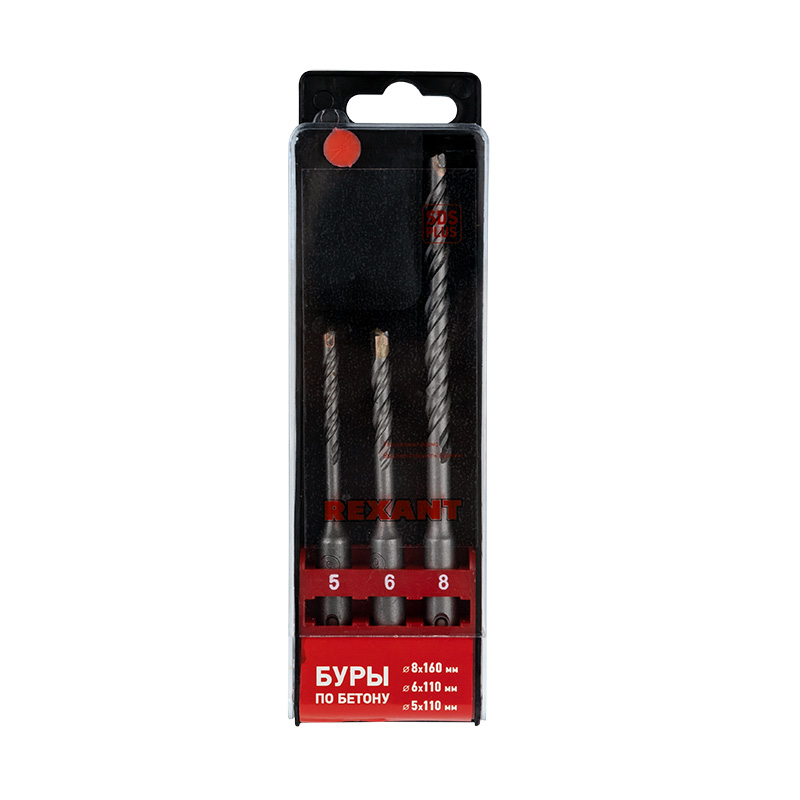 Набор буров по бетону 5х110, 6х110, 8х160 мм, 3 шт., в пластиковой коробке SDS PLUS REXANT.