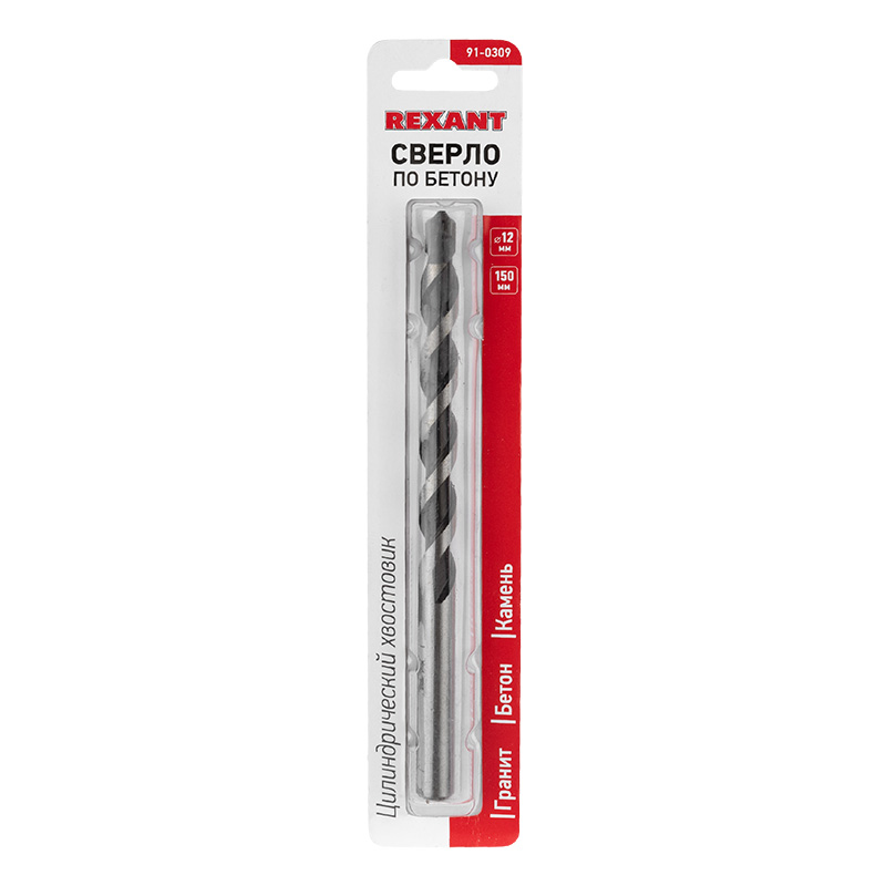 Сверло по бетону 12х150 мм, цилиндрический хвостовик REXANT — режущий инструмент, используется для ударного сверления твердых материалов: бетон, камень, кирпич. Используется совместно с дрелями для ударного сверления.