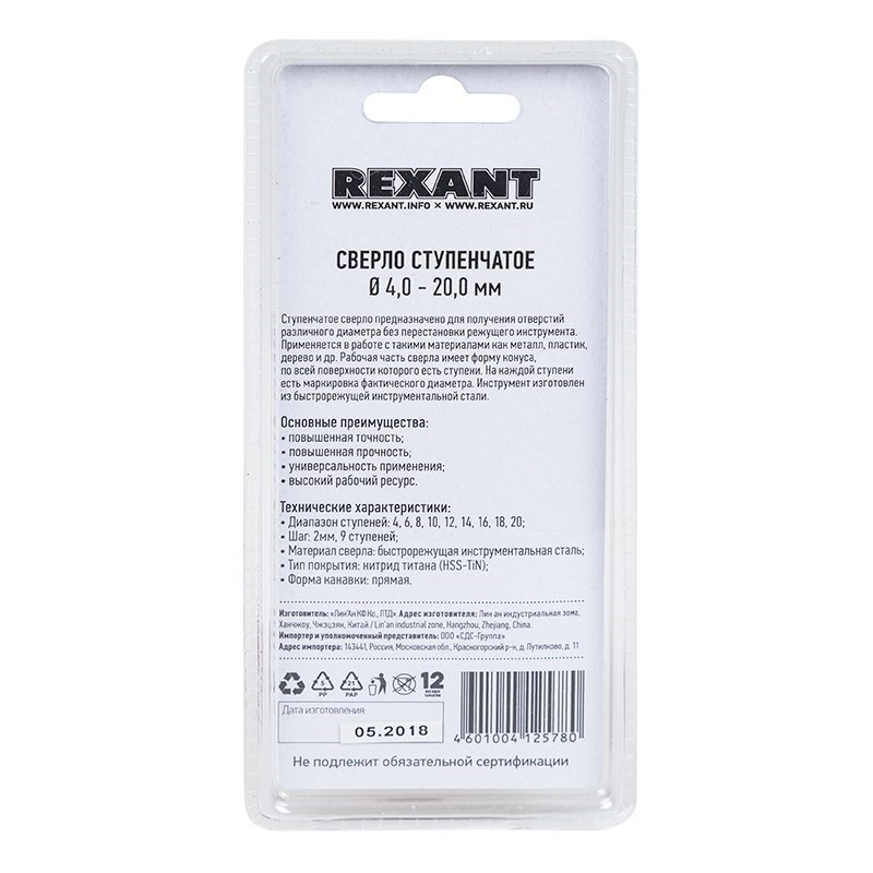 Сверло по металлу ступенчатое REXANT, 4,0-20,0 мм |
