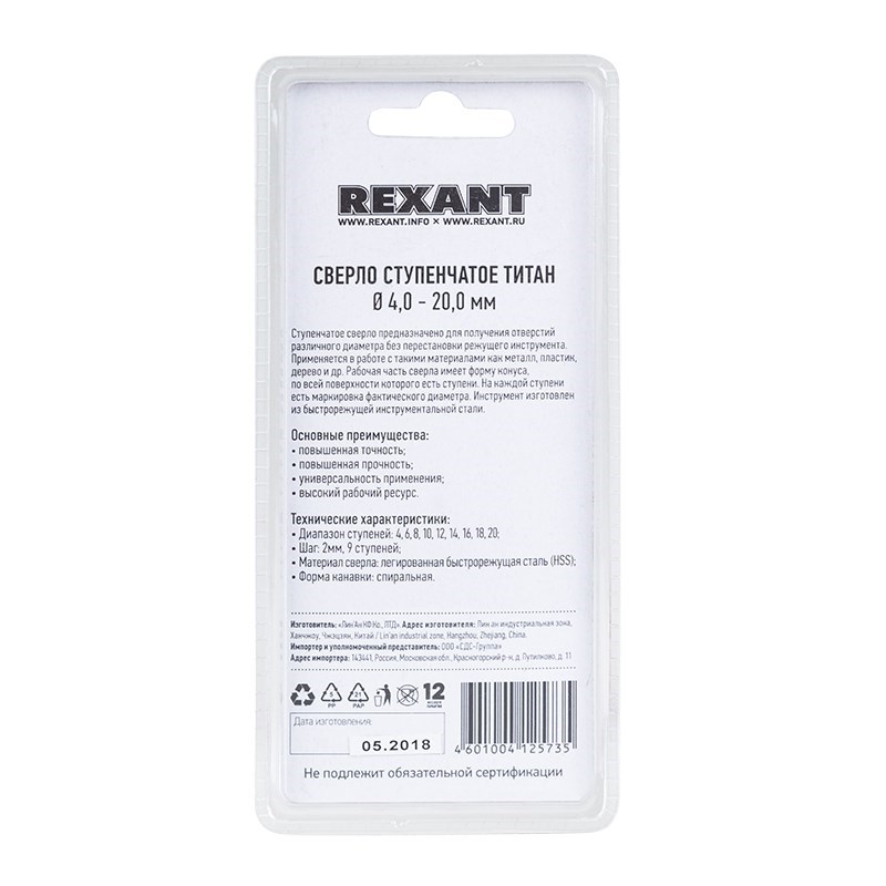 Сверло по металлу ступенчатое «ТИТАН» REXANT, 4,0-20,0 мм |