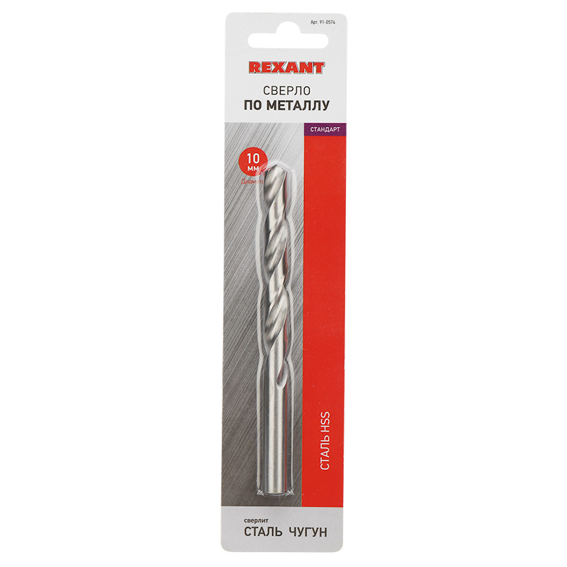 Сверло по металлу 10 мм HSS (1 шт. в упаковке) DIN 338 REXANT |