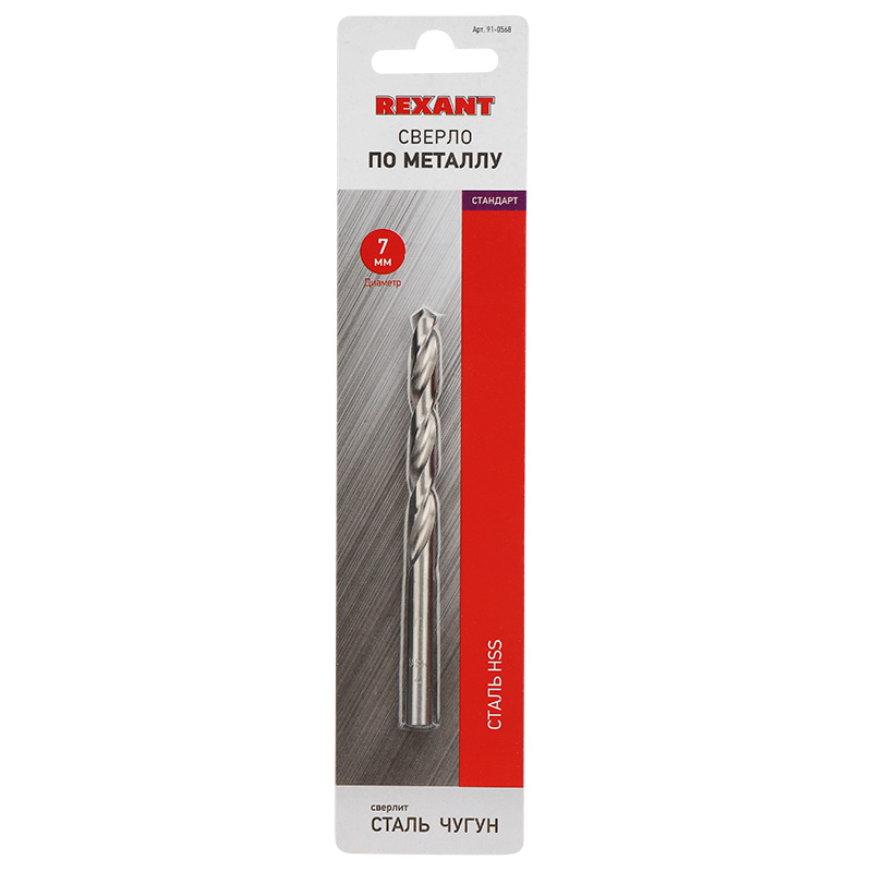 Сверло по металлу 7,0 мм HSS (1 шт. в упаковке) DIN 338 REXANT