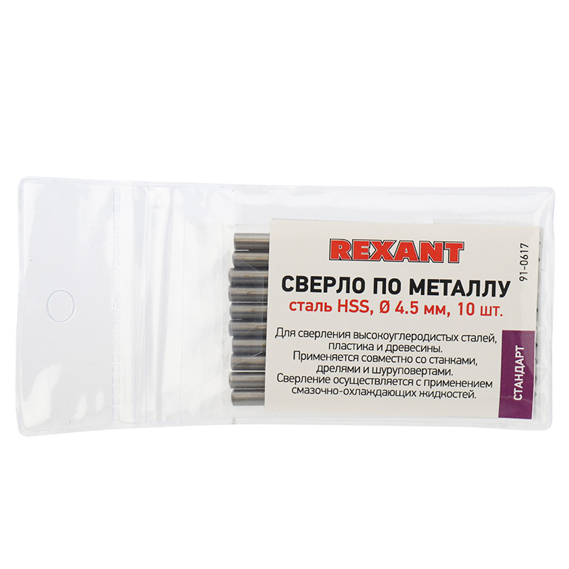 Сверло по металлу 4,5 мм HSS (10 шт. в упаковке) DIN 338 REXANT |