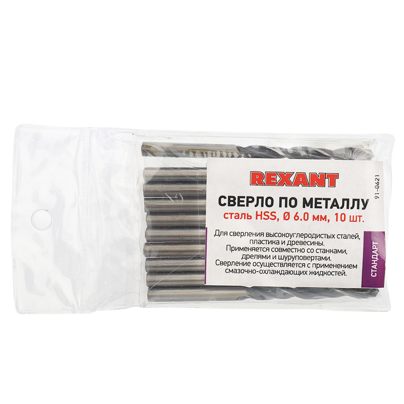 Сверло по металлу 6,0 мм HSS (10 шт. в упаковке) DIN 338 REXANT
