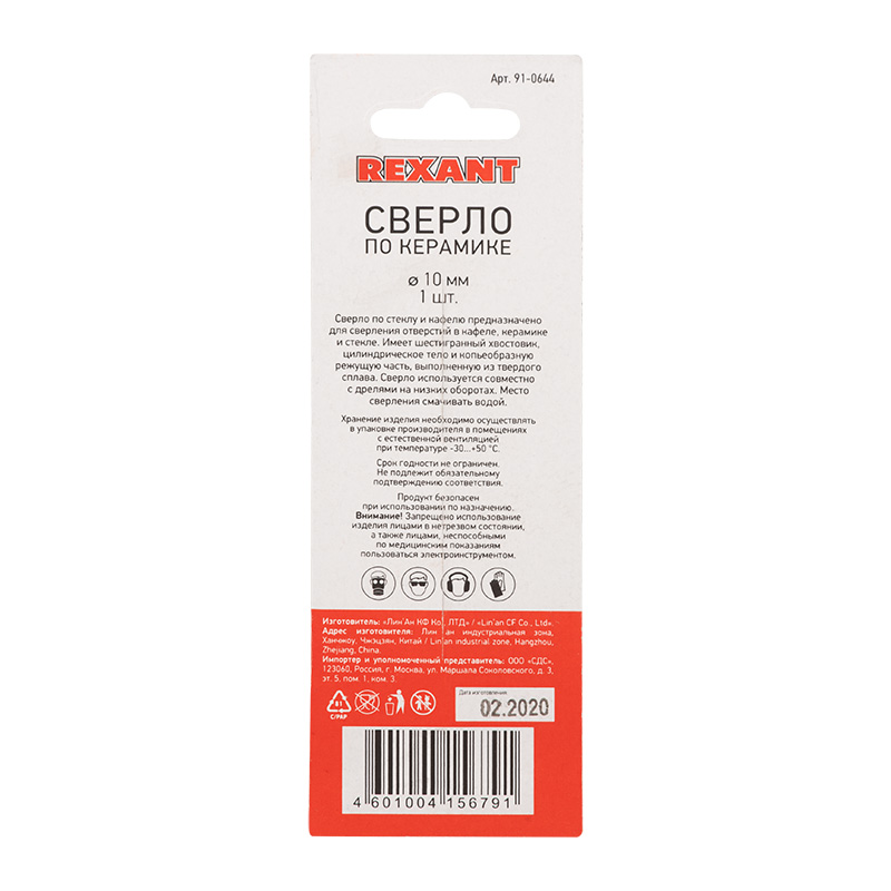 Сверло по стеклу и керамике10 мм (шестигранный хвостовик) REXANT |
