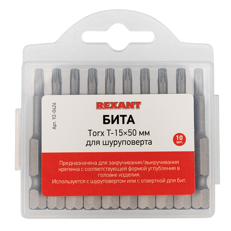 Бита Torx T-15*50 мм для шуруповерта (упак. 10 шт.) REXANT
