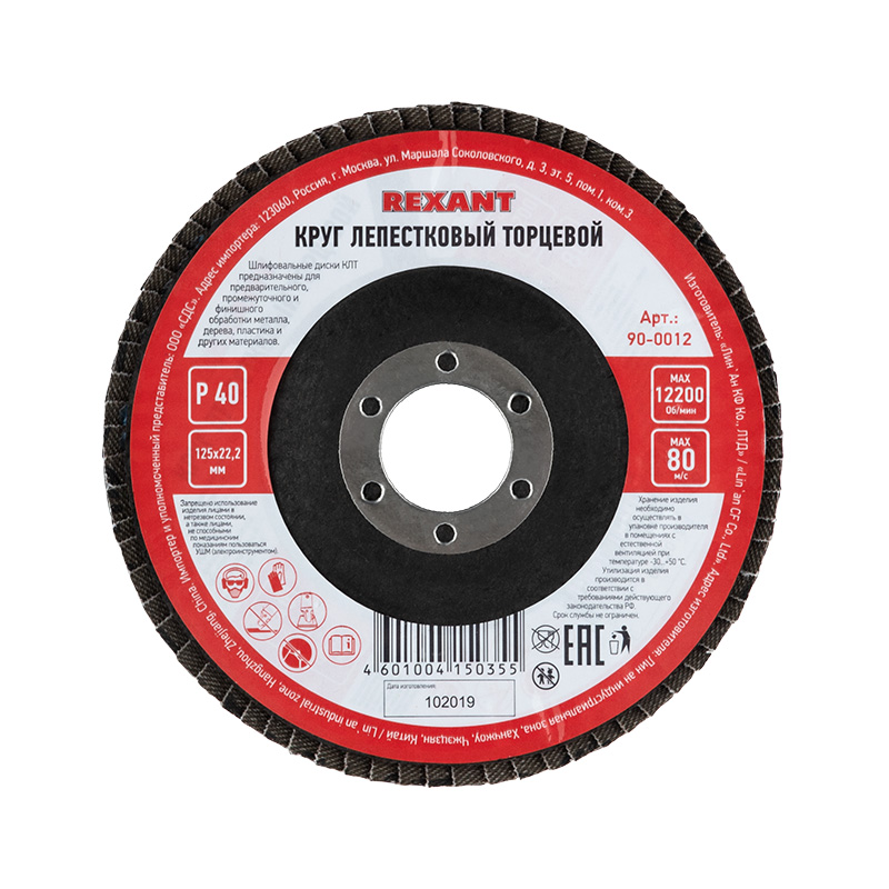 Круг лепестковый торцевой P 40, 125х22,2 мм REXANT |