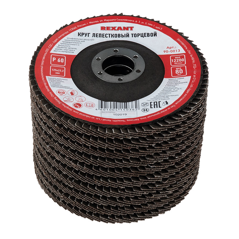 Круг лепестковый торцевой P 60, 125х22,2 мм REXANT
