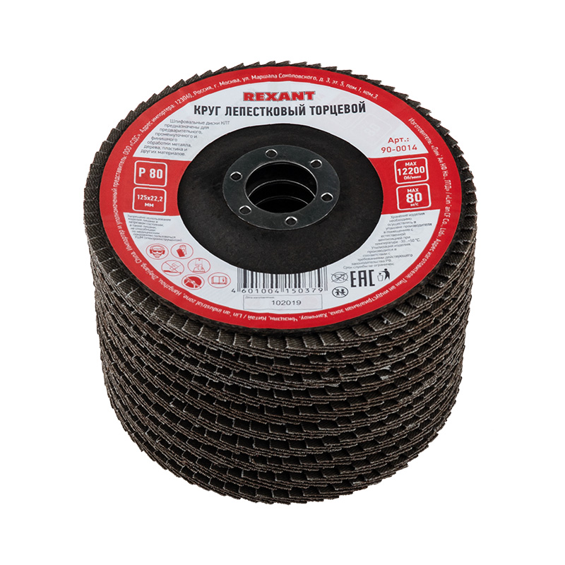 Круг лепестковый торцевой P 80, 125х22,2 мм REXANT |