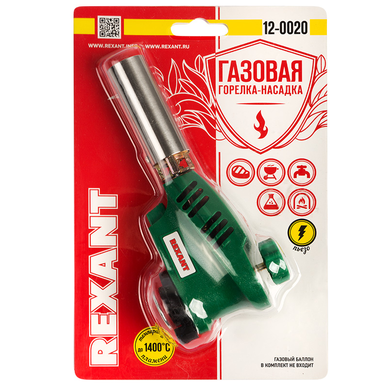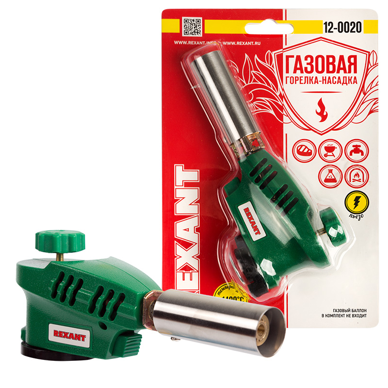 Газовая горелка-насадка REXANT GT-20 с пьезоподжигом. Благодаря наличию пьезоподжига, такой горелкой удобно пользоваться одной рукой. Рекомендуется для работы с термоусаживаемыми трубками, перчатками, муфтами; для плавления и сварки изделий из пластиков и стекла; удаления краски; обработки поверхностей на производстве и в лабораторных условиях; для разморозки замков, водопроводных труб, продуктов; для копчения продуктов или карамелизации десертов; для украшения процесса подачи блюд; для работ в саду и огороде, для быстрого и экологичного поджига дров, угля.