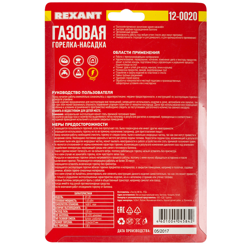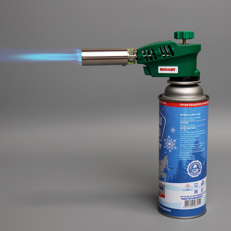 Перед началом работы с газовой горелкой REXANT необходимо ознакомиться с мерами предосторожности и инструкцией по эксплуатации на упаковке горелки!