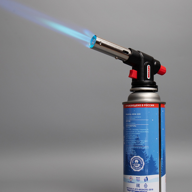 Газовая горелка-насадка REXANT GT-23 с пьезоподжигом. Благодаря наличию пьезоподжига, такой горелкой удобно пользоваться одной рукой. Рекомендуется для работы с термоусаживаемыми трубками, перчатками, муфтами; для плавления и сварки изделий из пластиков и стекла; удаления краски; обработки поверхностей на производстве и в лабораторных условиях; для разморозки замков, водопроводных труб, продуктов; для копчения продуктов или карамелизации десертов; для украшения процесса подачи блюд; для работ в саду и огороде, для быстрого и экологичного поджига дров, угля.