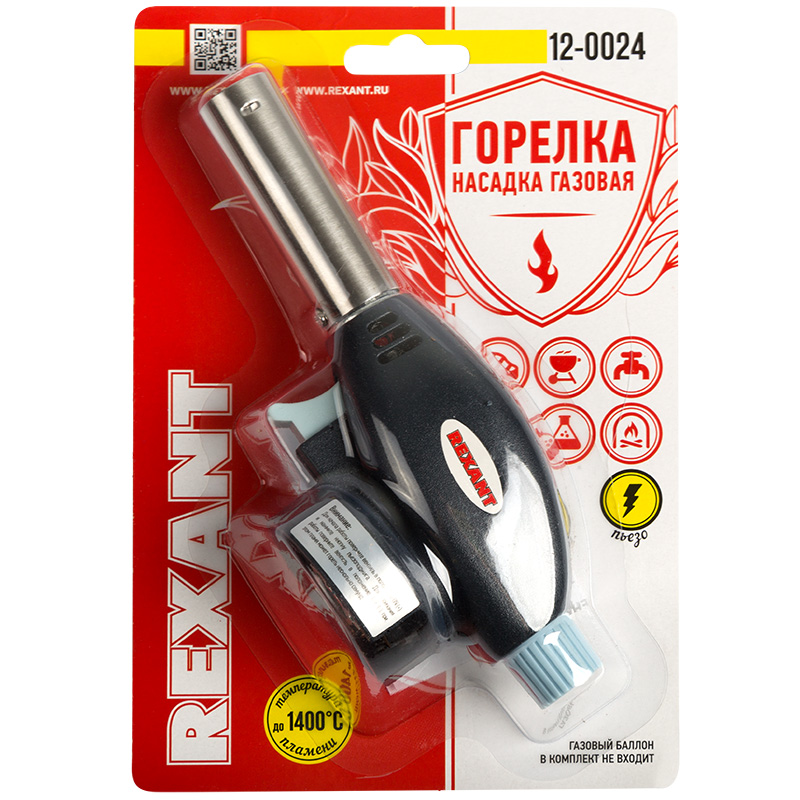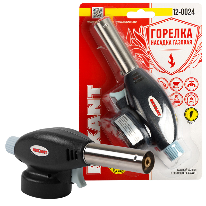 Газовая горелка-насадка REXANT GT-24 с пьезоподжигом. Благодаря наличию пьезоподжига, такой горелкой удобно пользоваться одной рукой. Рекомендуется для работы с термоусаживаемыми трубками, перчатками, муфтами; для плавления и сварки изделий из пластиков и стекла; удаления краски; обработки поверхностей на производстве и в лабораторных условиях; для разморозки замков, водопроводных труб, продуктов; для копчения продуктов или карамелизации десертов; для украшения процесса подачи блюд; для работ в саду и огороде, для быстрого и экологичного поджига дров, угля.