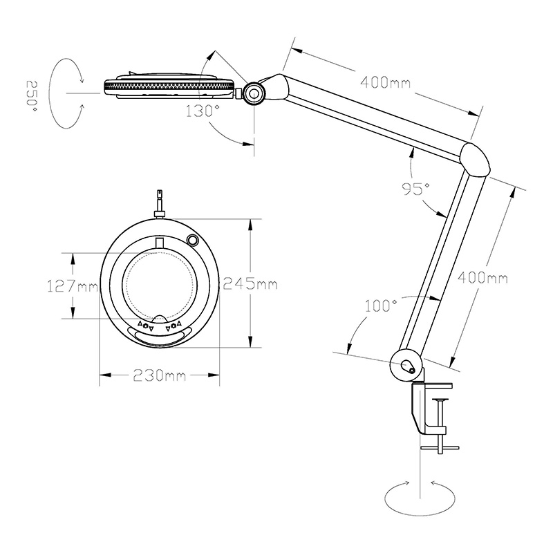 8. Струбцинное крепление к столу надежно зафиксирует лупу на любой плоской поверхности.