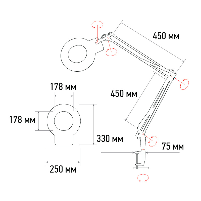 4. Удобный пантографический механизм, состоящий из звеньев. Обеспечит хорошую устойчивость и точную фиксацию лупы в пространстве в необходимом положении.