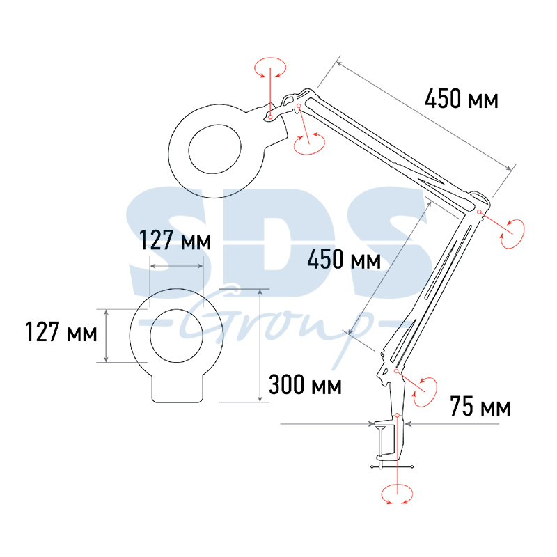 4. Удобный пантографический механизм, состоящий из звеньев. Обеспечит хорошую устойчивость и точную фиксацию лупы в пространстве в необходимом положении.