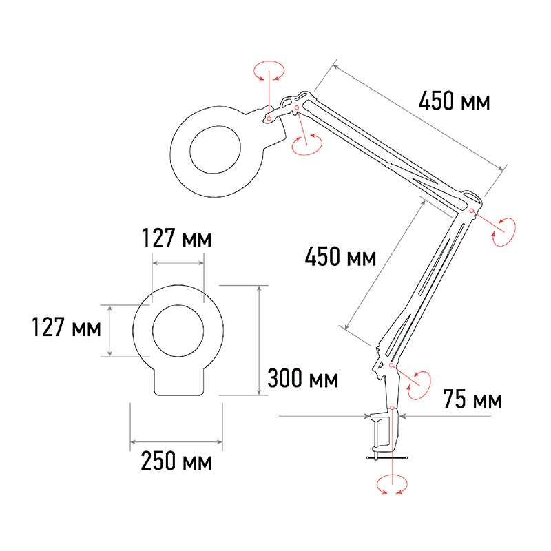 6. Струбцинное крепление к столу. Зафиксирует лампу-лупу на любой плоской поверхности.