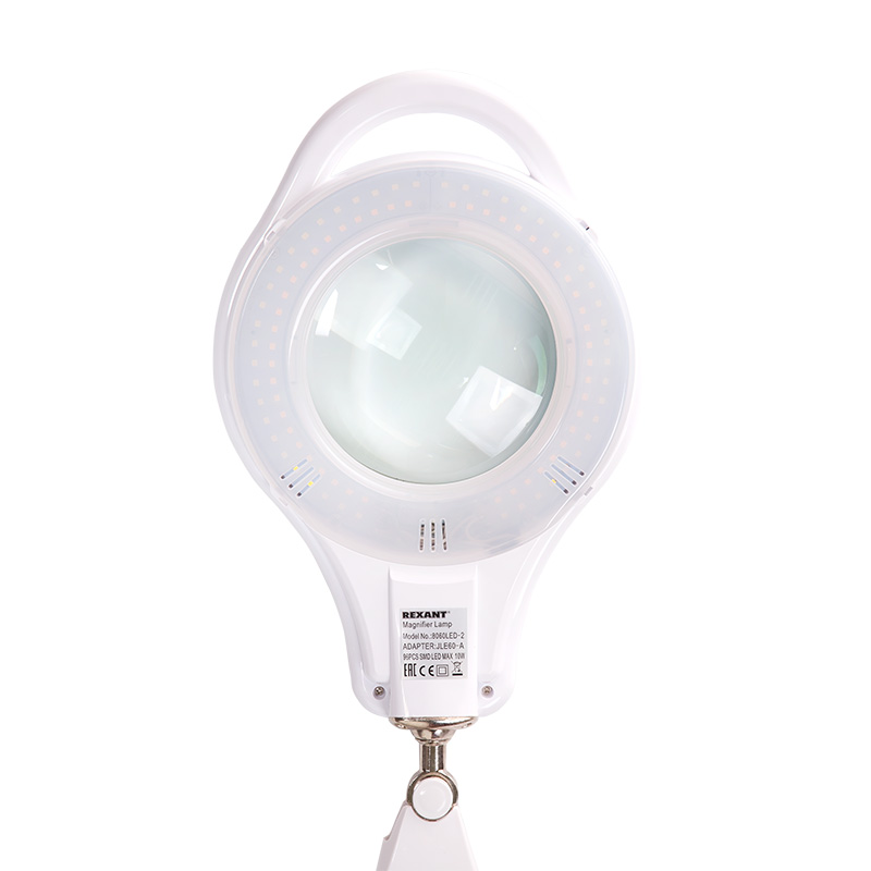 Лупа на струбцине REXANT, круглая, 5D, с подсветкой 96 LED, теплый и холодный свет, белая |